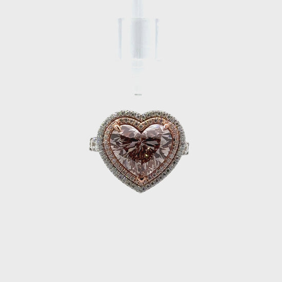 Lab Grown Diamond Pink Heart Shaped Cocktail Ring 18K White Gold